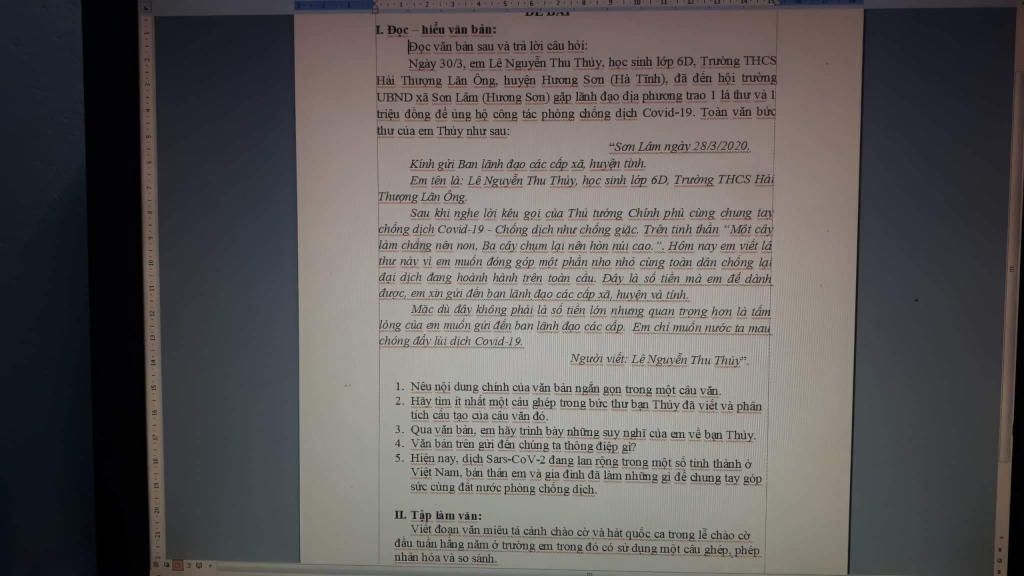 1. Đây là một bức thư của một bạn học sinh tên là Lê Nguyễn Thu Thủy ở Hà Tĩnh gửi cho UBND xã Sơn Lâm (Hương Sơn) vì em muốn đóng góp một phần nho nhỏ cùng toàn dân chống lại đai dịch đang hoành hành trên toàn cầu.
