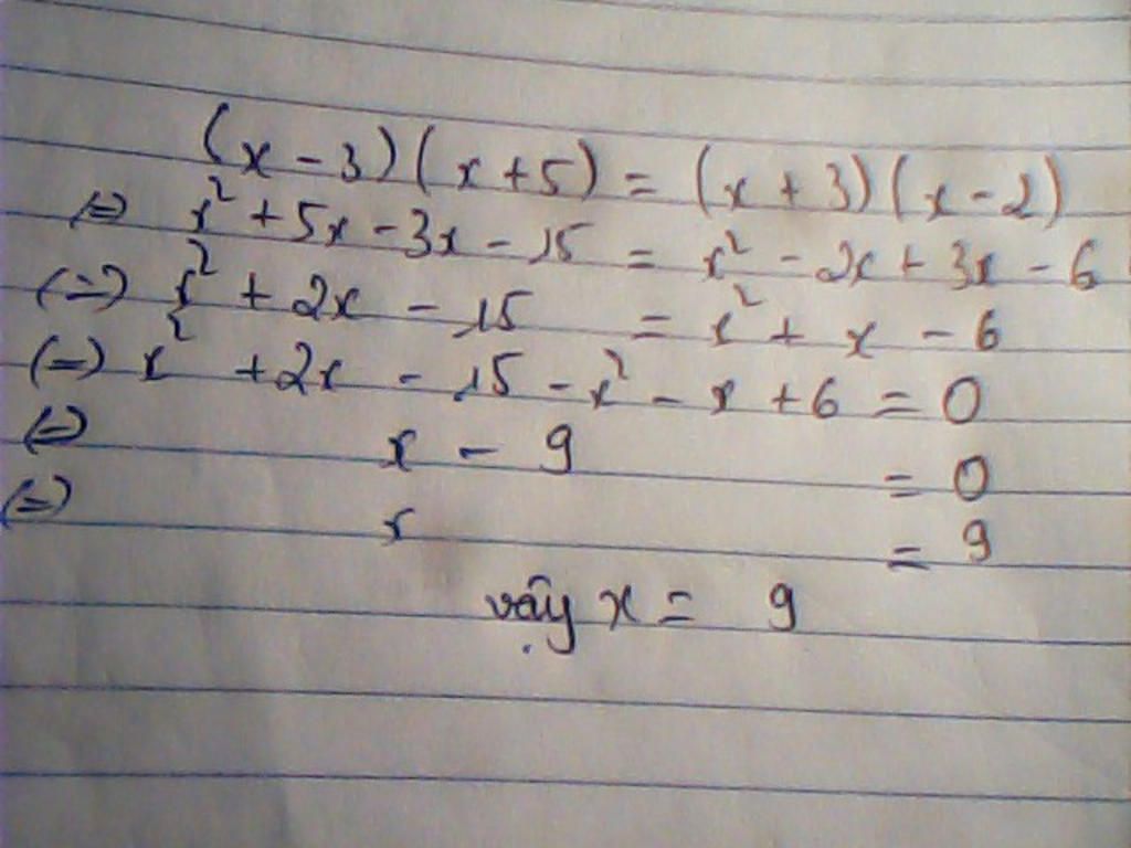 `(x - 3)(x + 5) = (x + 3)(x - 2)`