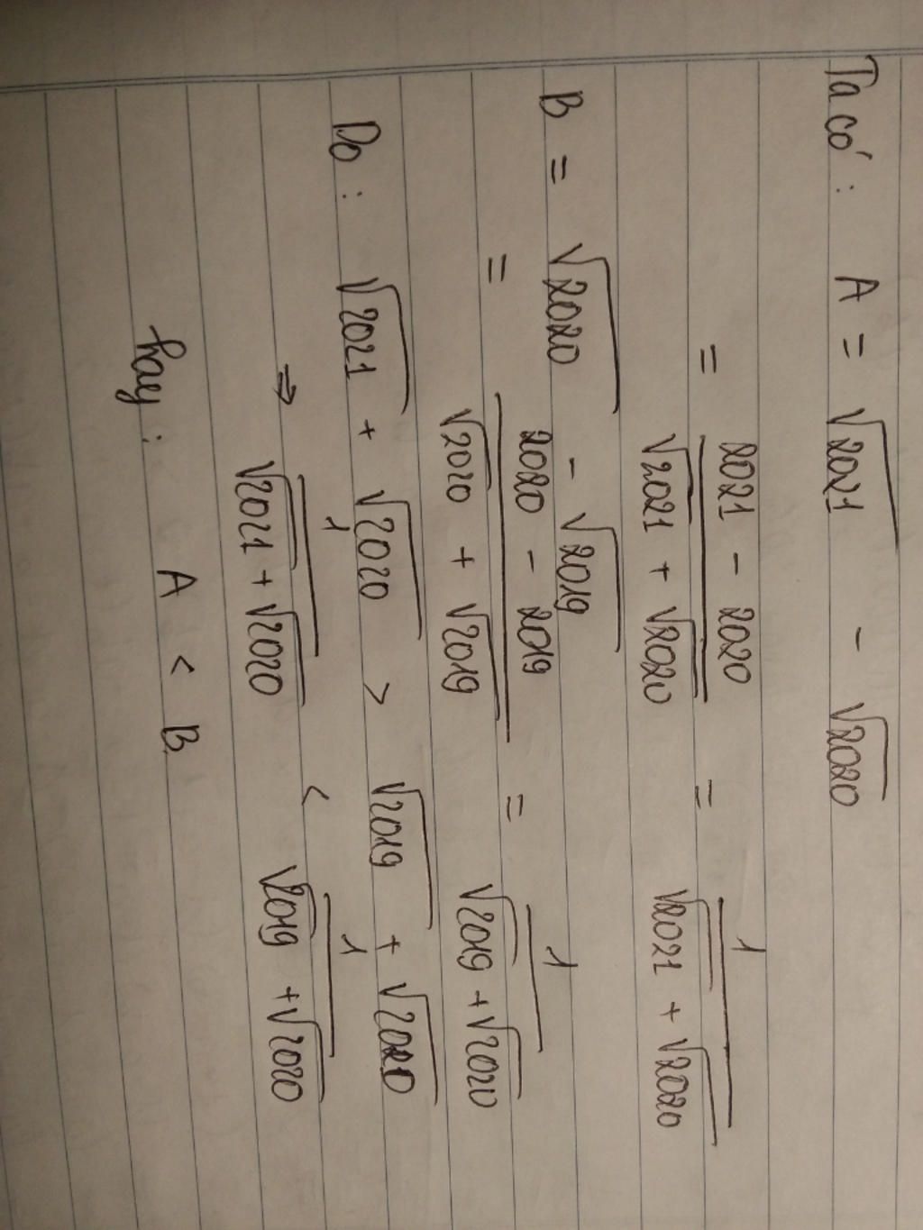 $ ⇔ \sqrt[]{2021} + \sqrt[]{2019} < 2.\sqrt[]{2020}$
