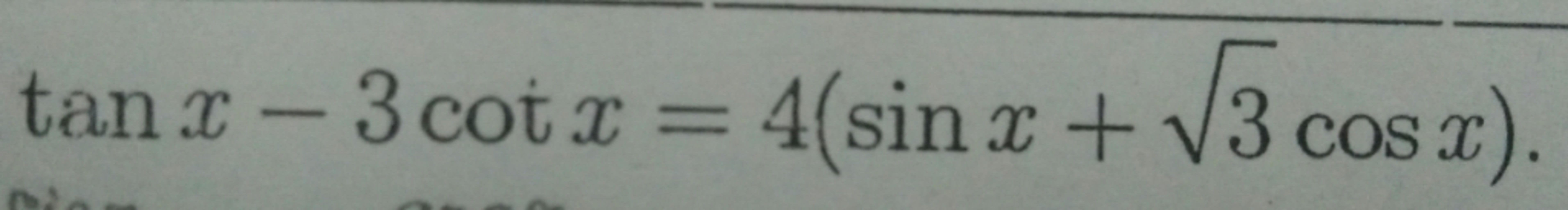 \tan x - 3\cot x = 4\left( {\sin x + \sqrt 3 \cos x} \right)\\