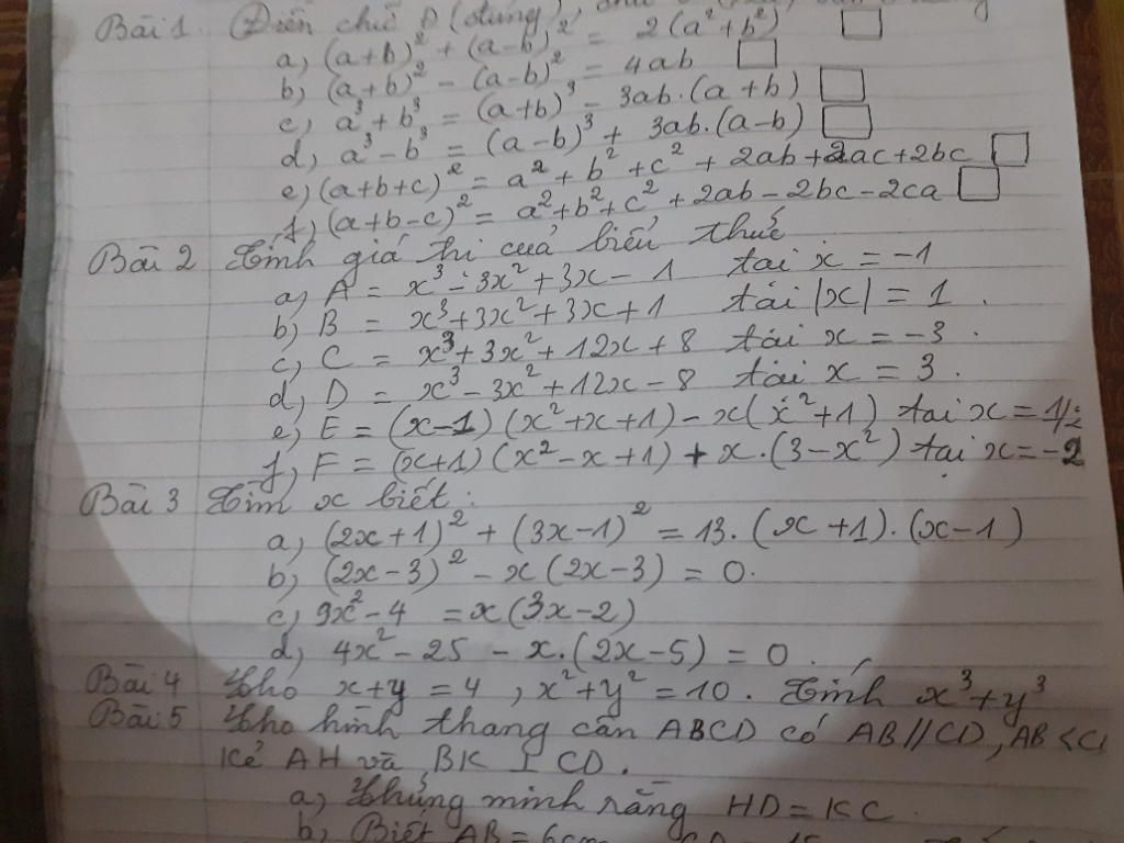 a)Sai vì:(x+y)²+(x-y)²=x²+2xy+y²+x²-2xy+y²=2x²+2y²=2(x²+y²).