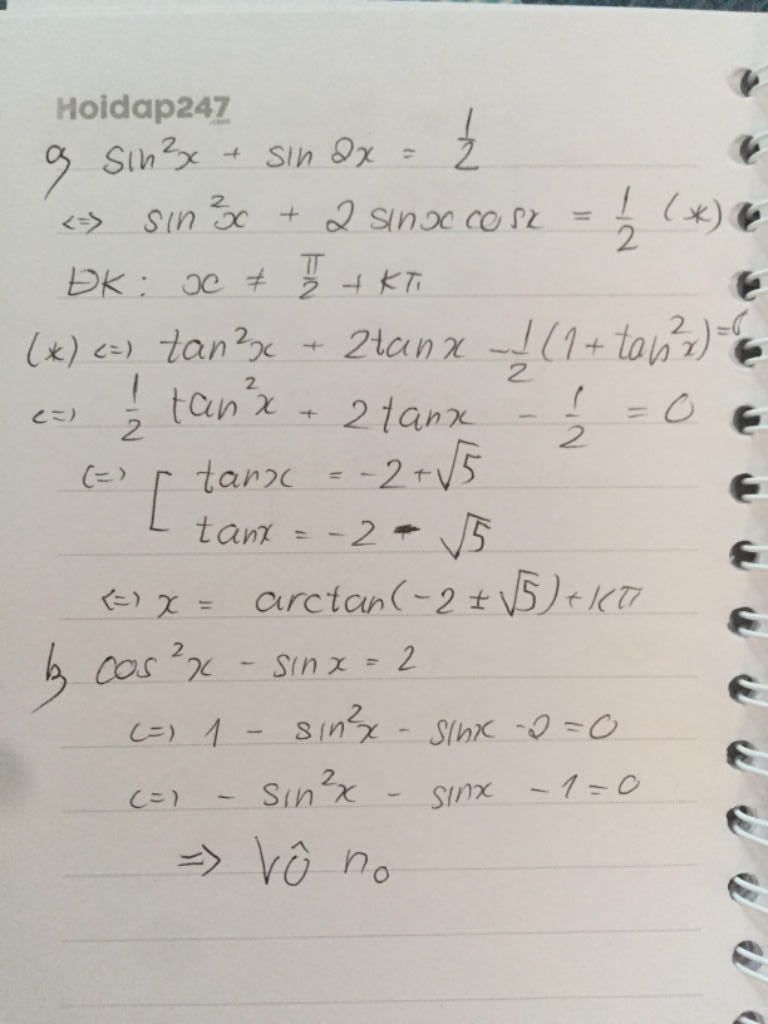 $\Leftrightarrow \sin^2x + \sin x + 1 = 0$ (vô nghiệm)