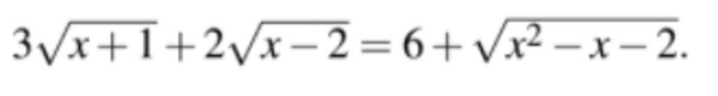 `3sqrt(x+1)+2sqrt(x-2)=6+sqrt(x^2-x-2)`