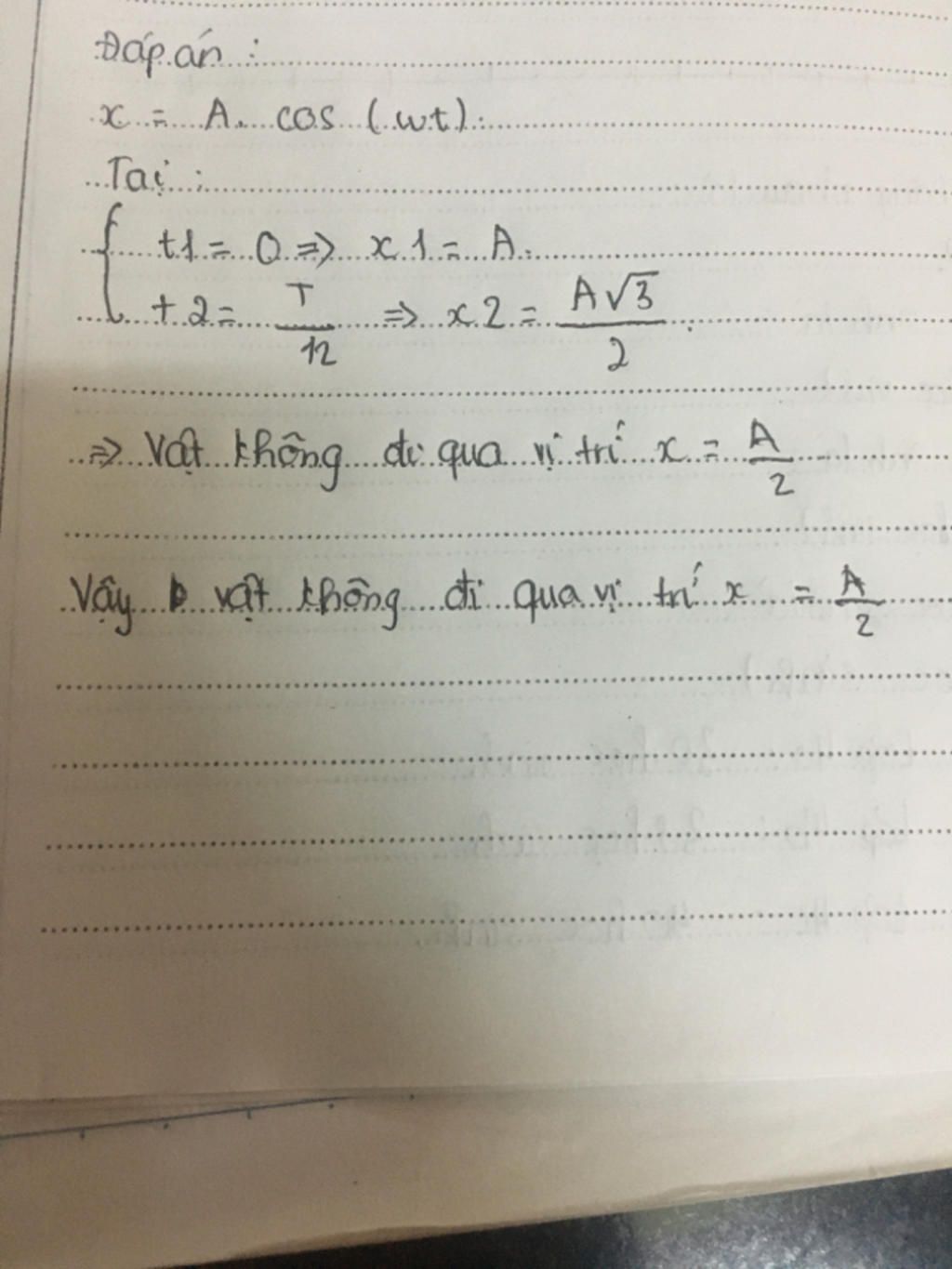 Vật không đi qua vị trí x=A/2