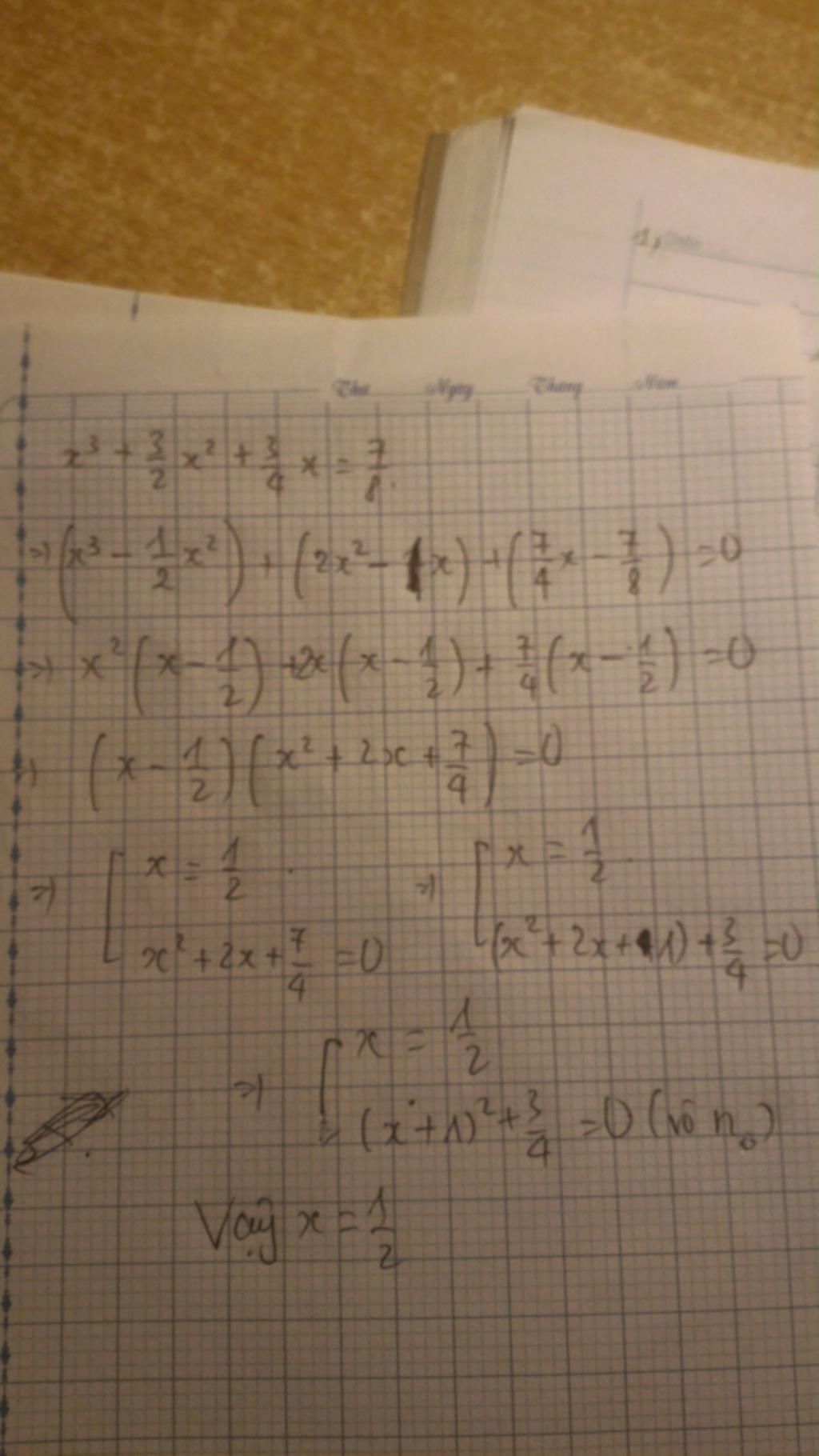 `<=>x^3+(3x^2)/2+(3x)/4=7/8`