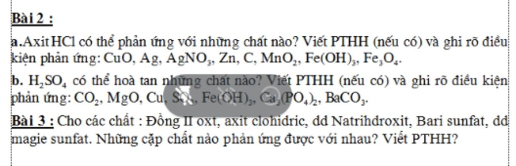`H_2SO_4` có thể hòa tan những chất là: `MgO, Cu, Fe(OH)_3, Ca_3(PO_4)_2, BaCO_3`