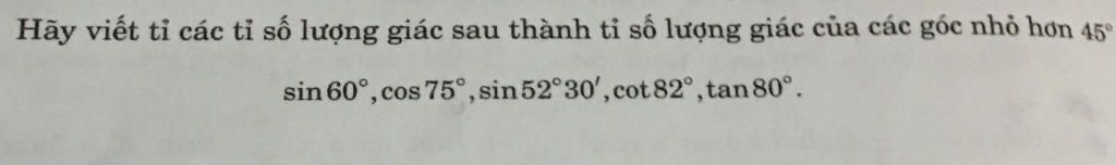 đây là công thức mà sin góc A = cos (90 độ trừ góc A) tan góc B = cot (90 độ trừ góc B)