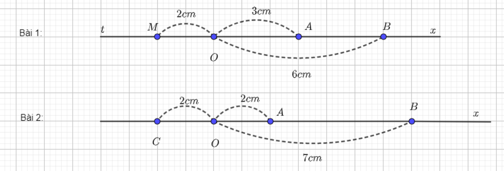 nên $OB=OA+AB\Rightarrow AB=OB-OA=7-2=5$