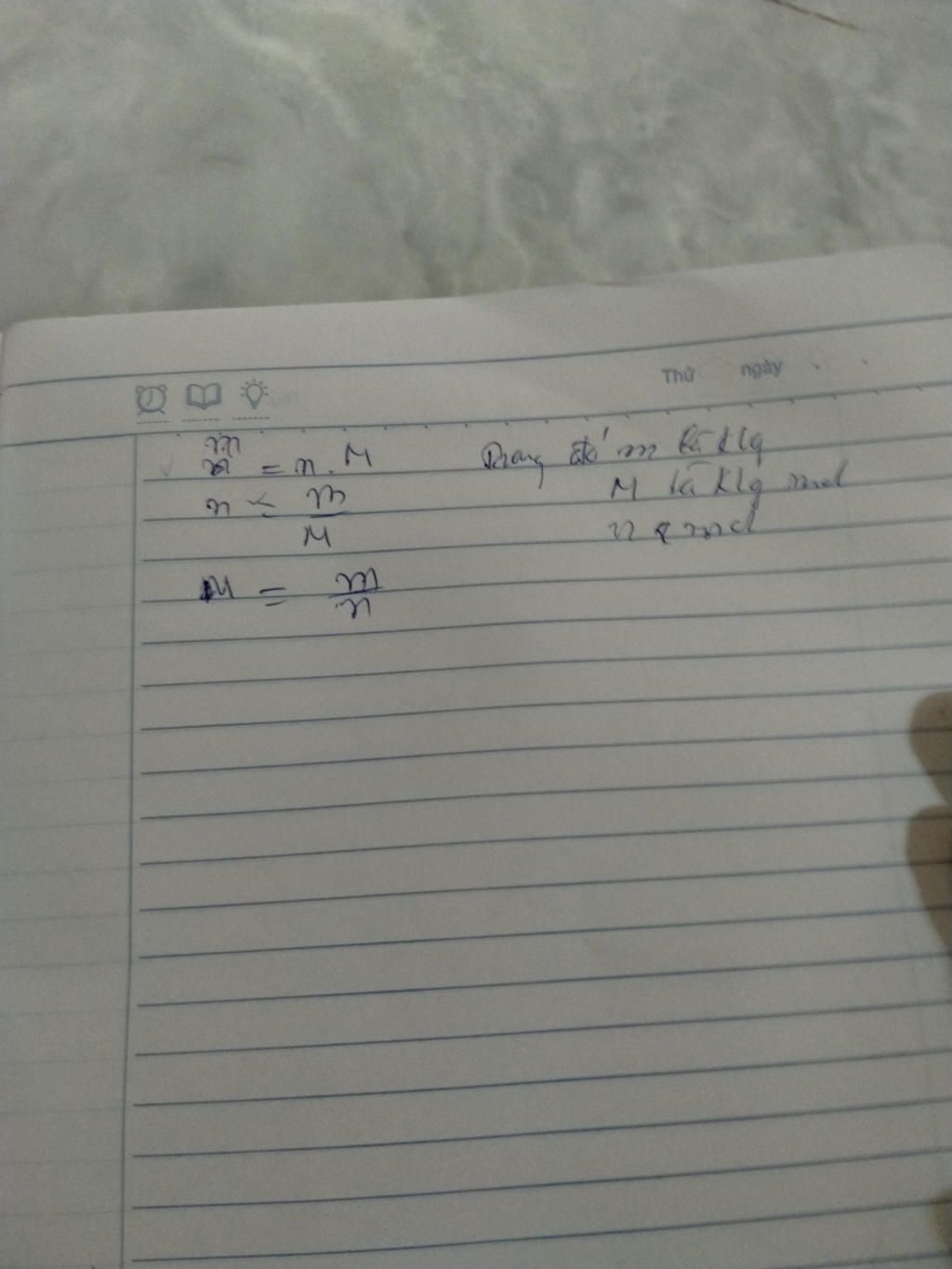M là khối lượng mol chất (bằng nguyên tử khối hay phân tử khối của chất đó), tính bằng g/mol.