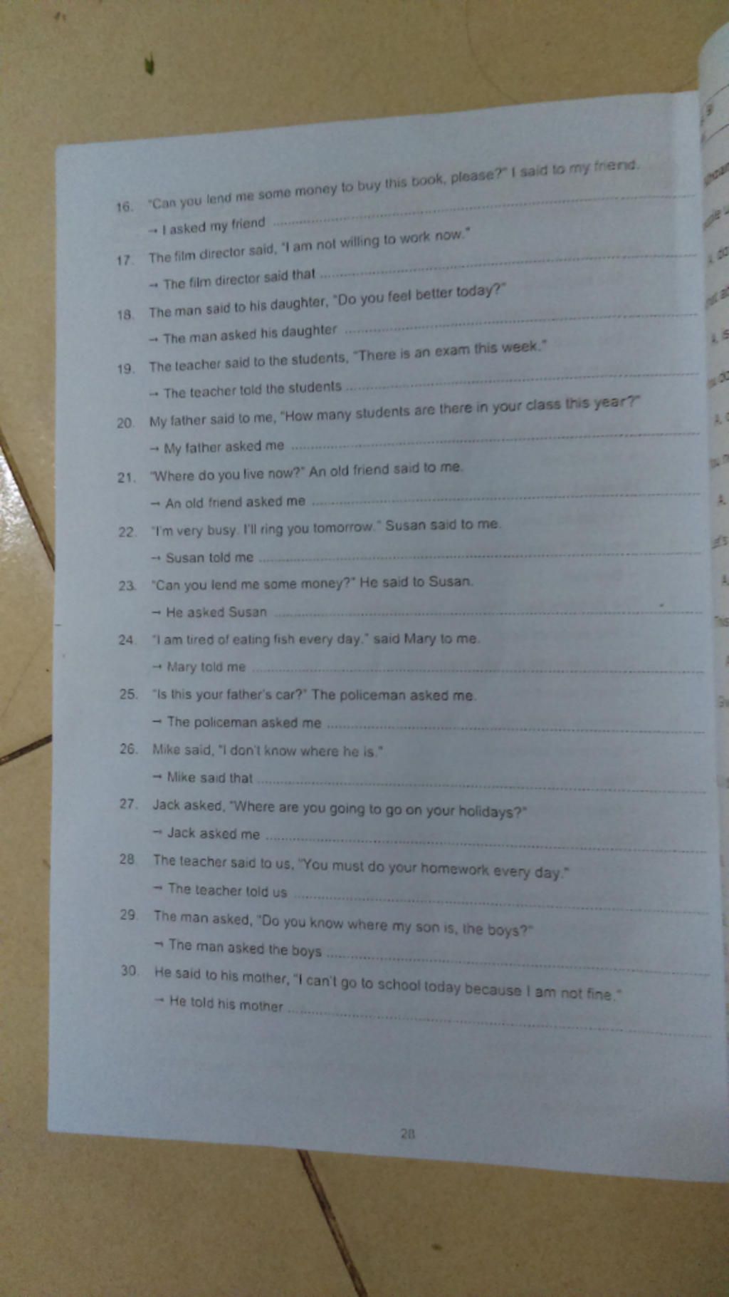 28. The teacher told us we must do our homework every day.