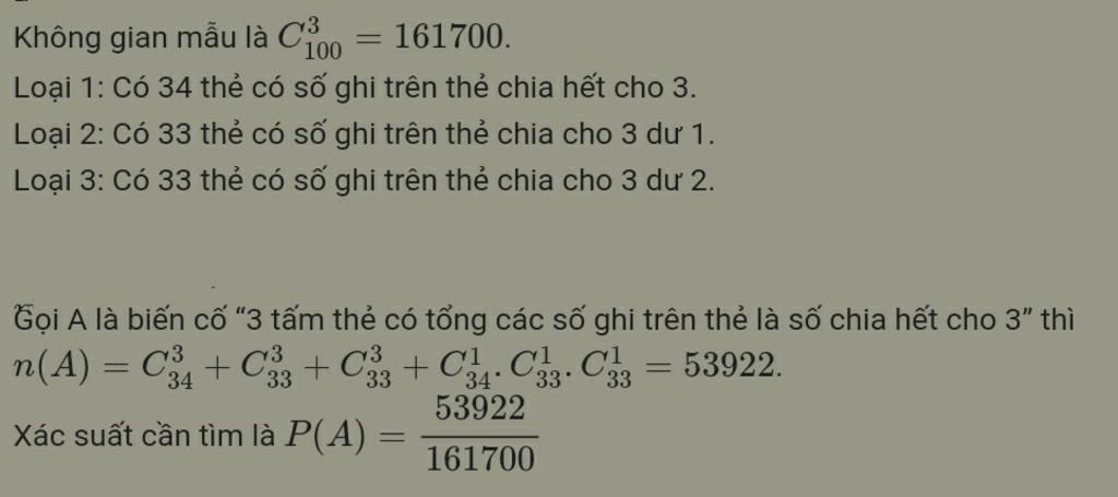 $\to$Để tổng $3$ tấm thẻ đó chia hết cho $3$ thì: