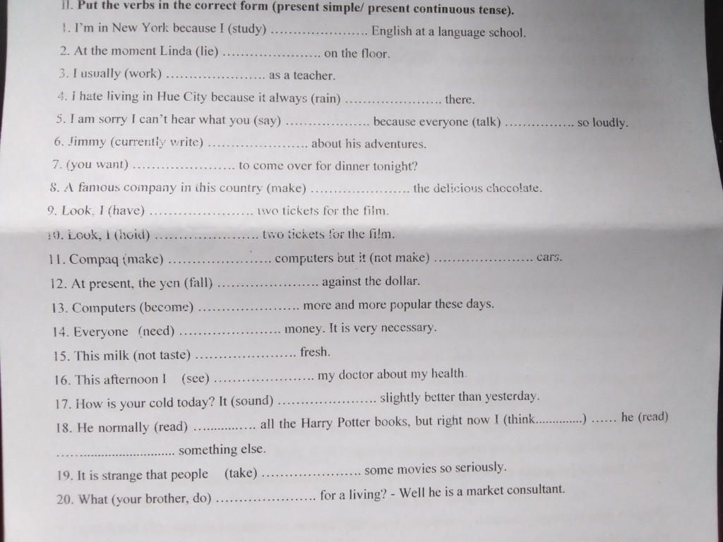 5.are saying - is talking ( để nói về hành động đang xảy ra → Thì HTTD)