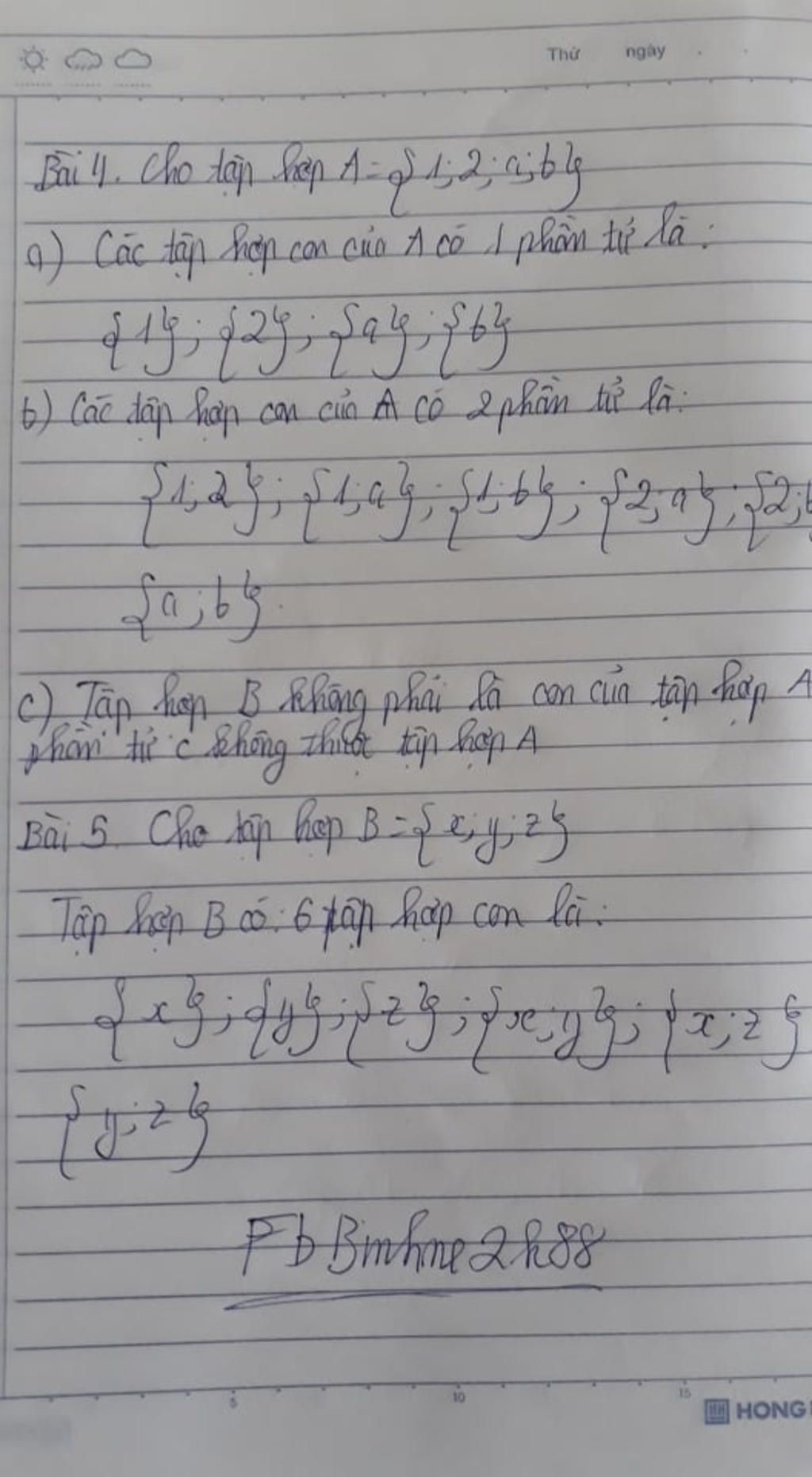 - Tập hợp con của B không có phần từ nào là∅ .