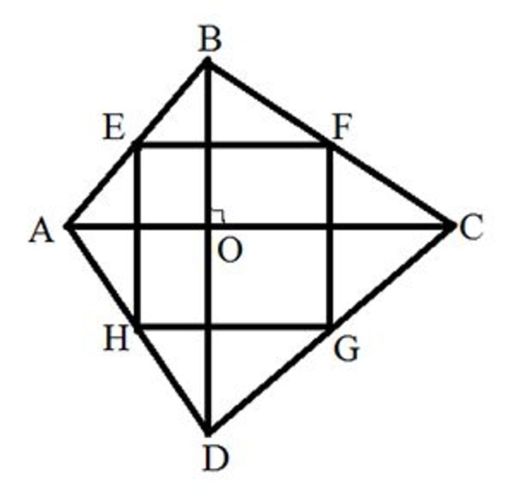 a. tam giác ABC có E là trung điểm của AB F là trung điểm của BC nên EF là đường trung bình của tam giác ABC => EF// AC, EF = 1/2AC (1) tam giác ADC có G là trung điểm của DC H là trung điểm của AD nên GH là đường trung bình của tam giác ADC => GH // AC, GH = 1/2AC (2) từ (1) và (2) suy ra EF // GH, EF = GH tứ giác EFGH có EF // GH , EF = GH nên là hình bình hành ta có EF // AC, BD vuông góc với AC => EF vuông góc với BD ta có EH // BD, EF vuông góc với BD => EF vuông góc với EH hay ^E = 90 độ hình bình hành EFGH có ^E = 90 độ nên là hình chữ nhật