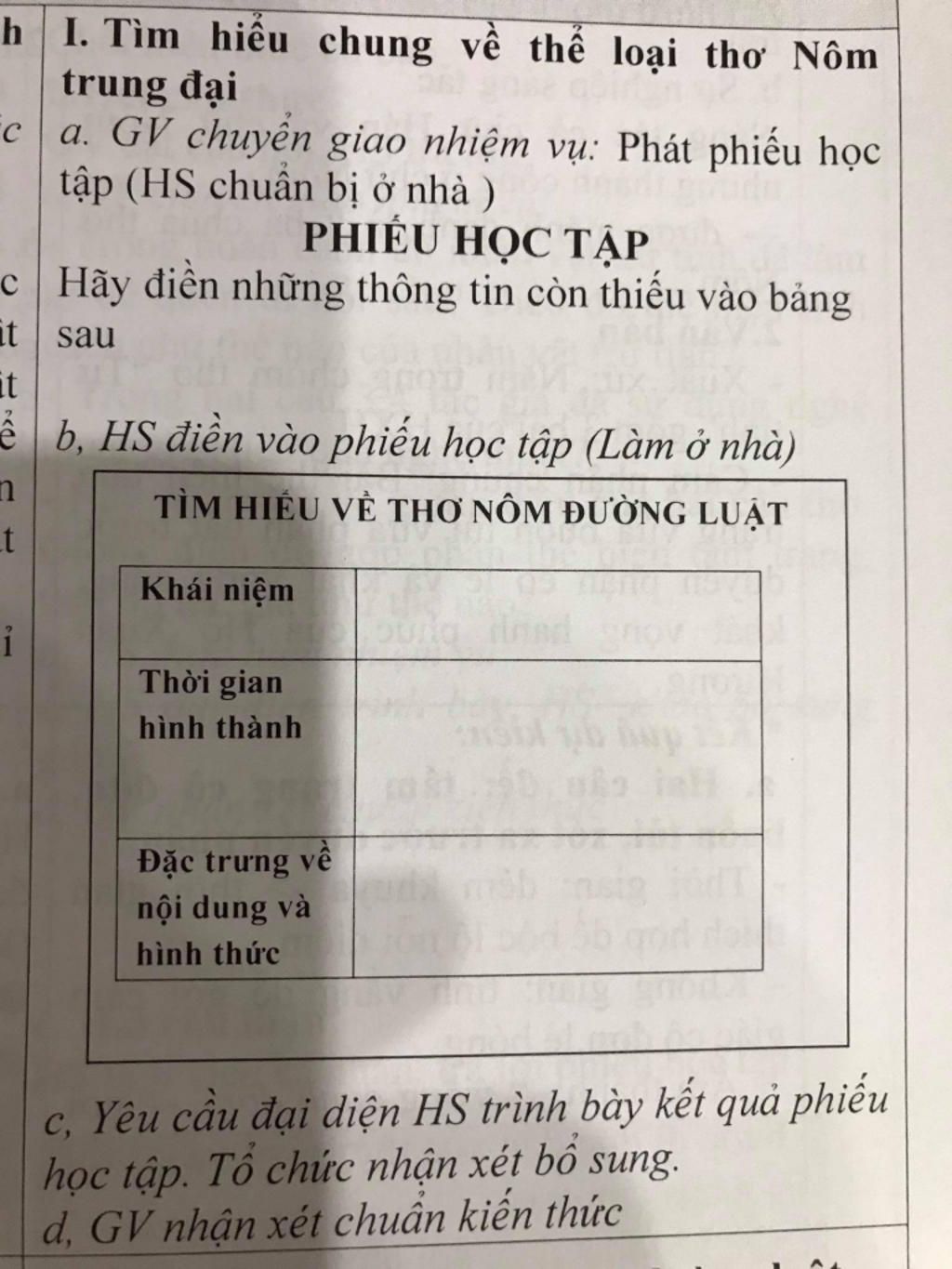 Thời gian hình thành : Thơ Nôm Đường luật ra đời từ thế kỉ XIII, cuối thời nhà Lý đầu thời nhà Trần sau sự xuất hiện của chữ Nôm.