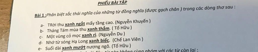 Xanh biếc: Chỉ màu xanh nước biển đậm, tươi tắn (hoặc tươi ánh lên).