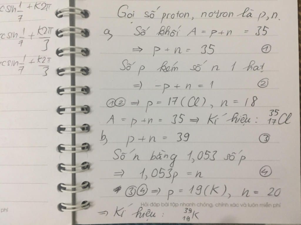 -vì nguyên tử X có số khối là 39: