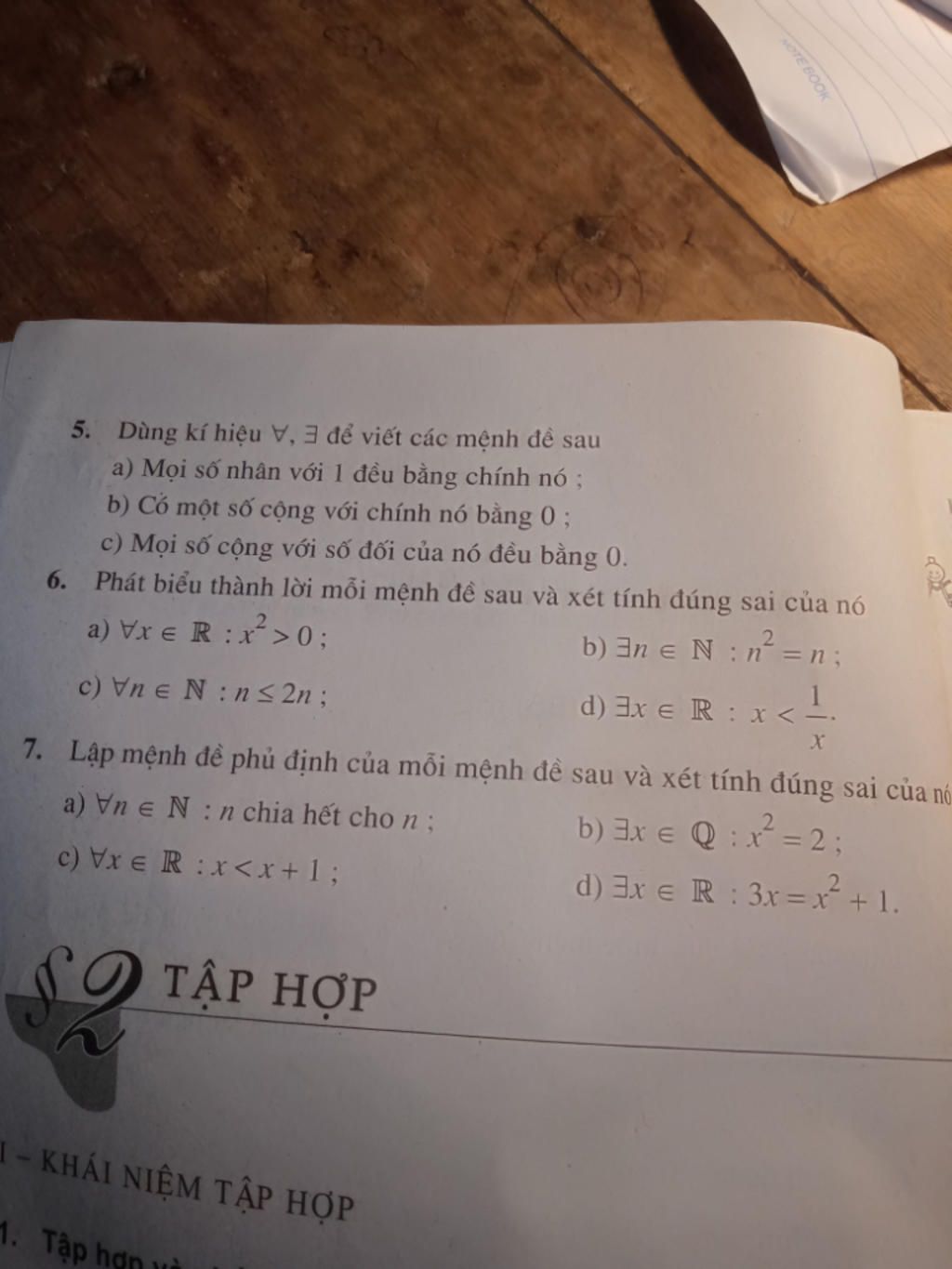 ài 5 (trang 10 SGK Đại số 10): Dùng kí hiệu ∀, ∃ để viết các mệnh đề sau: