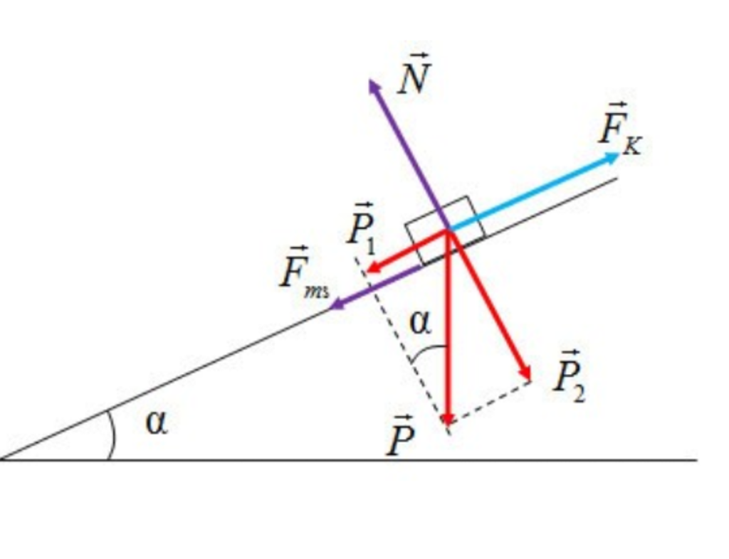 {P_1} = {F_{ms}} \Rightarrow P\sin \alpha = \mu mg\\
