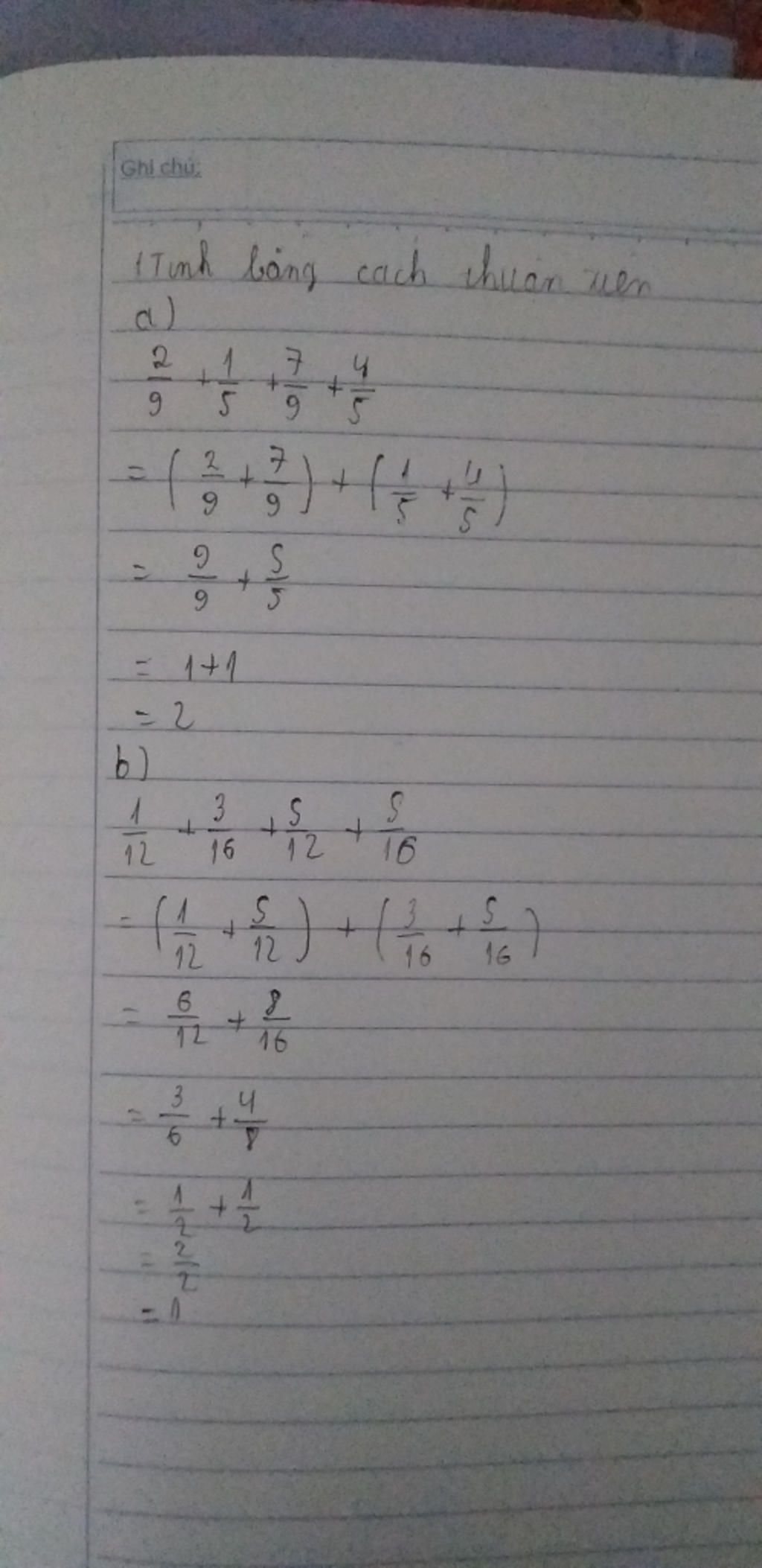 =(2/9+7/9)+(1/5+4/5)