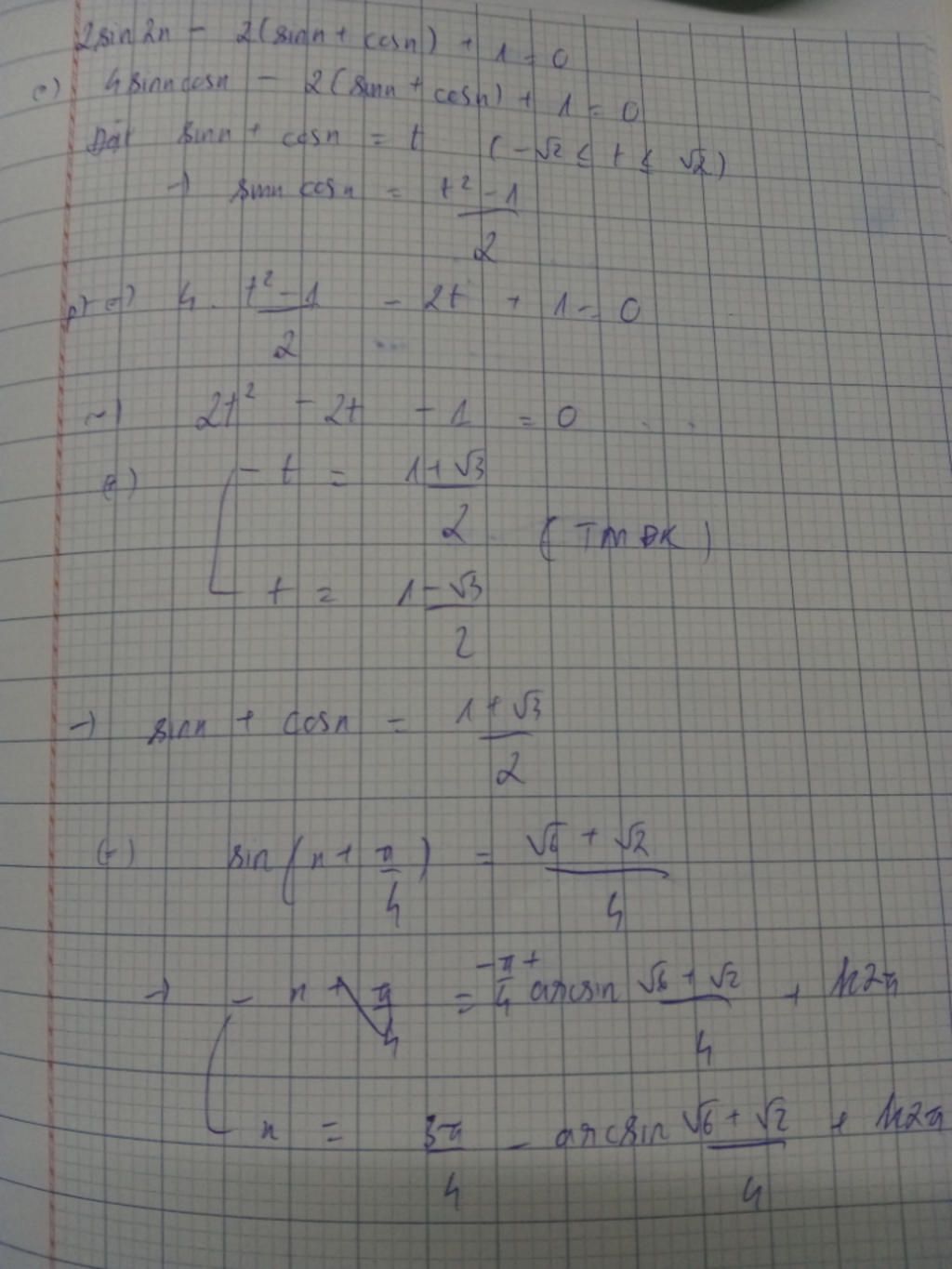 Với `t=(1+\sqrt3)/2 : sinx+cosx = (1+\sqrt3)/2`