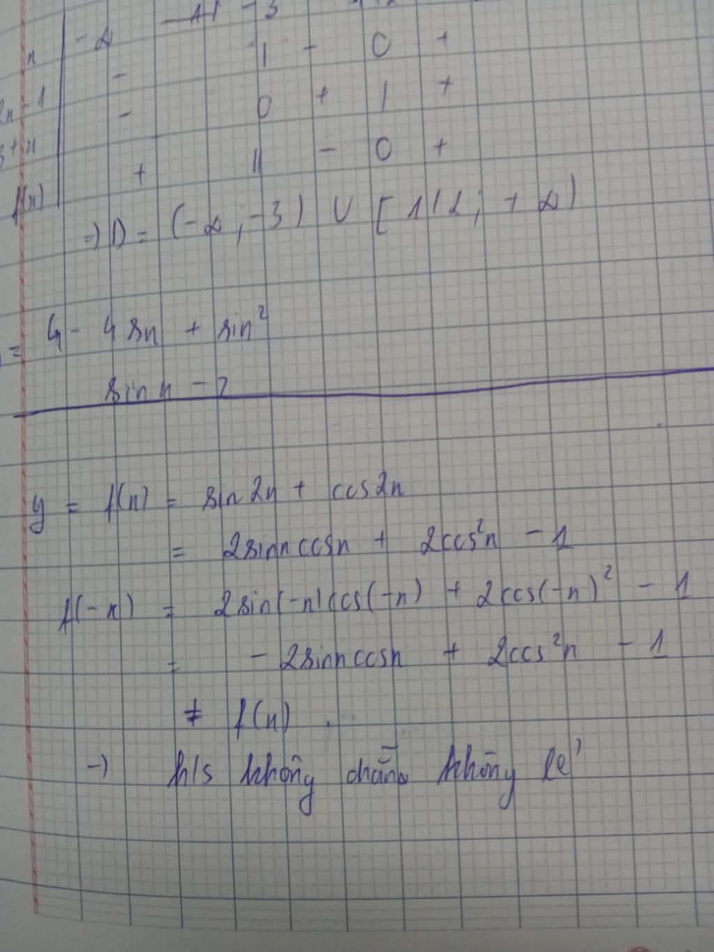 Mình giải như bth ko áp dụng ct nhưng mà vẫn ra ko chẵn ko lẻ thì có đúng k b? Ý là mình ko dùng ct để suy sin2x thành 2sinx.cosx ấy??