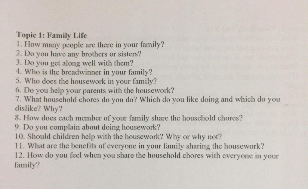 11. The benefits of everyone in my family sharing the housework are we can connect with our family members. In addition, we can spend time doing housework together, the housework time will be reduced and our house is kept clean everyday
