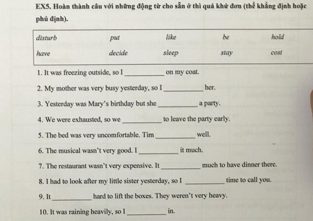 $\text{6. didn’t like.}$