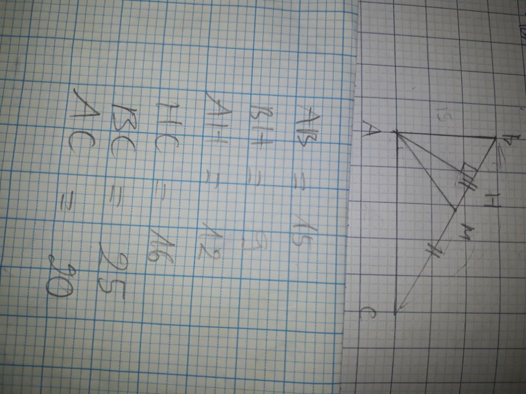 $\Rightarrow AM = MB = MC = \dfrac{1}{2}BC = \dfrac{25}{2}$