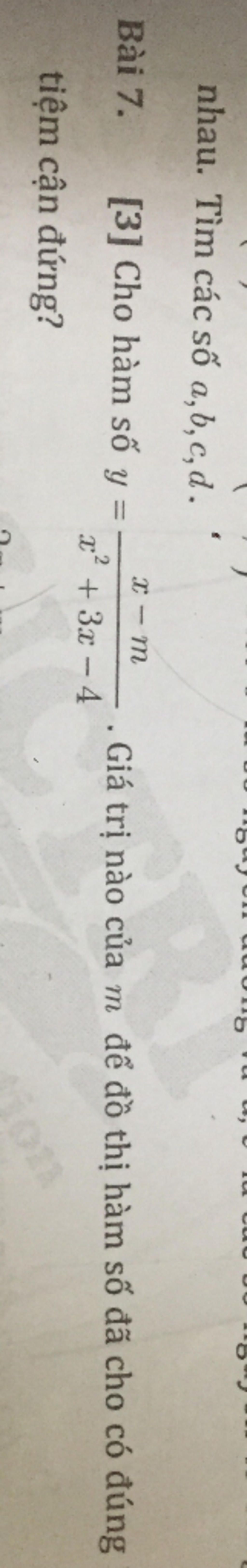$ y = \dfrac{x - m}{x² + 3x - 4} = \dfrac{x - m}{(x - 1)(x + 4)}$