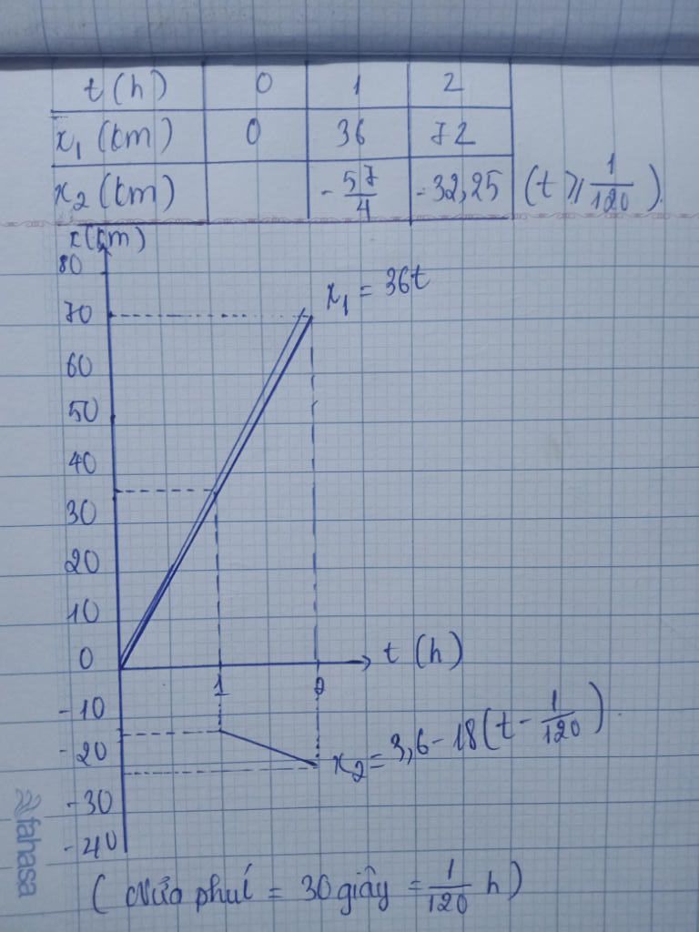 - Của xe đi từ B : $x_2=3,6 - 18.\bigg(t - \dfrac{1}{120}\bigg)$