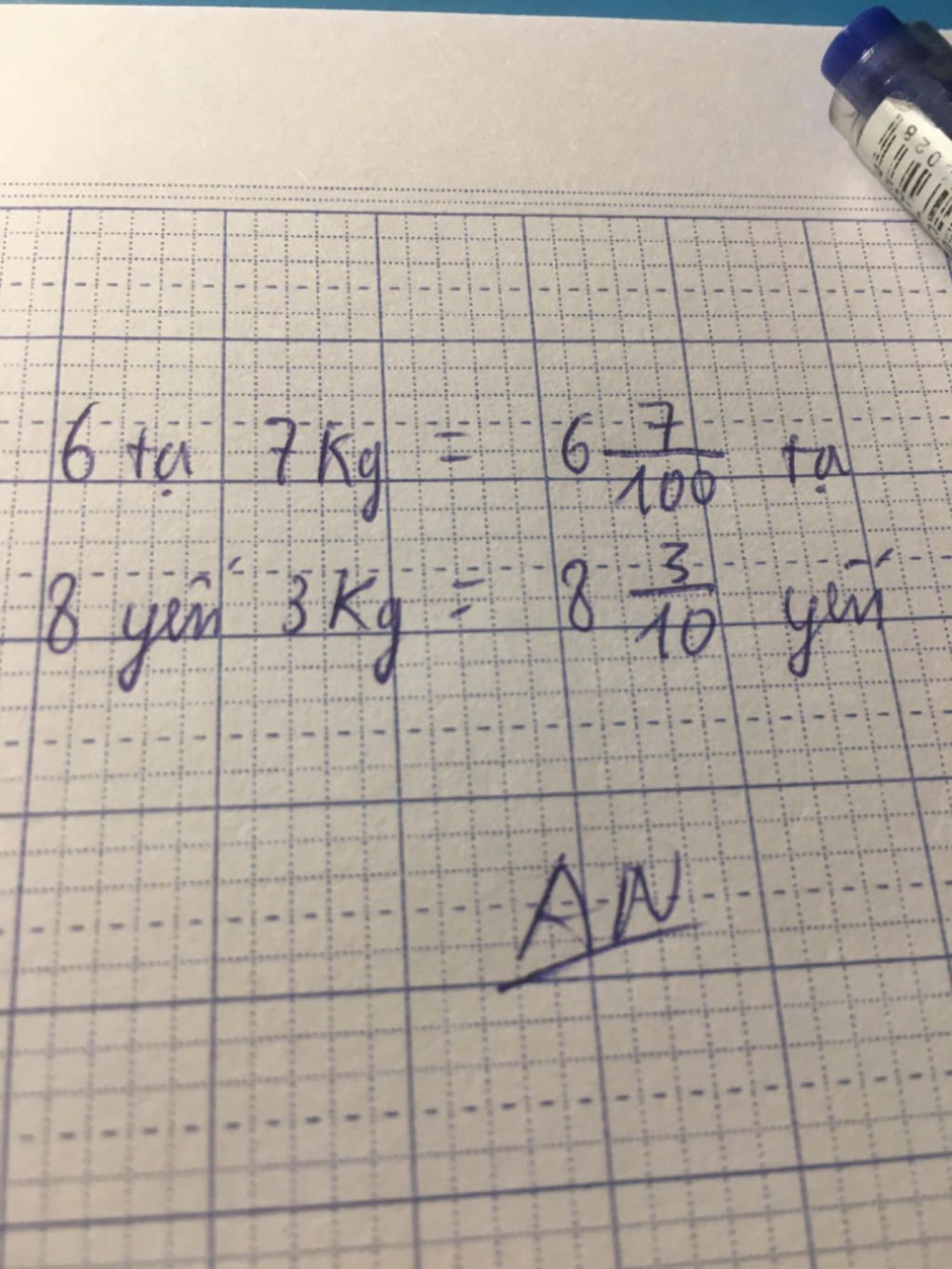 - `8` yến `3kg` `= 8 + 3/10 = 8 3/10` yến.