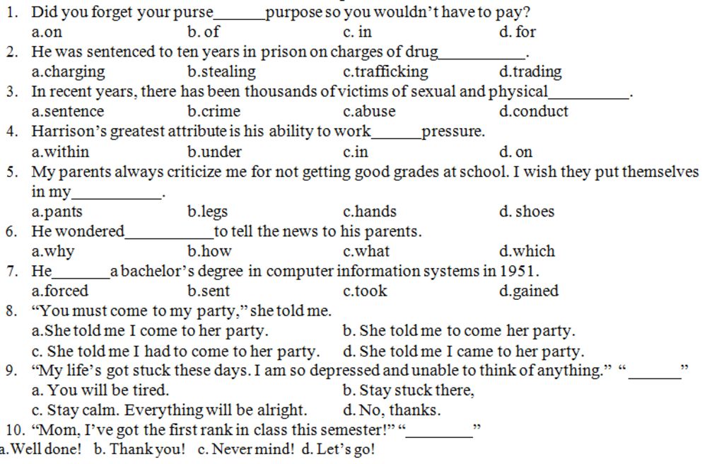 5, d – shoes (put yourself in someone’s shoes: đặt mình vào vị trí của người khác)