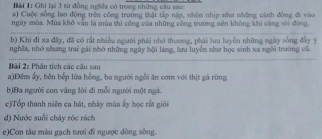 a. Ba từ đồng nghĩa là:TẤP NẬP, NHỘN NHỊN, SÔI ĐỘNG.