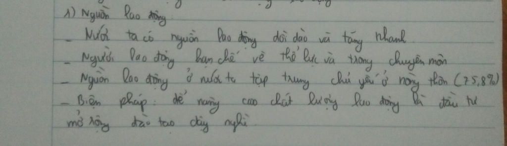 - Nguồn lao động nước ta dồi dào, tăng nhanh, bình quân mỗi năm nước ta tăng thêm khoảng hơn 1 triệu lao động.