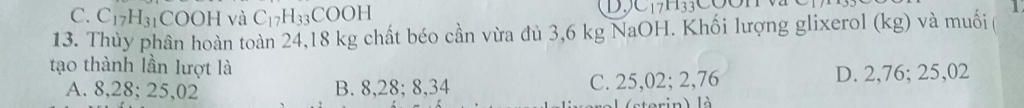 $\to m_{glixerol} = 0,03.92 = 2,76(kg)$