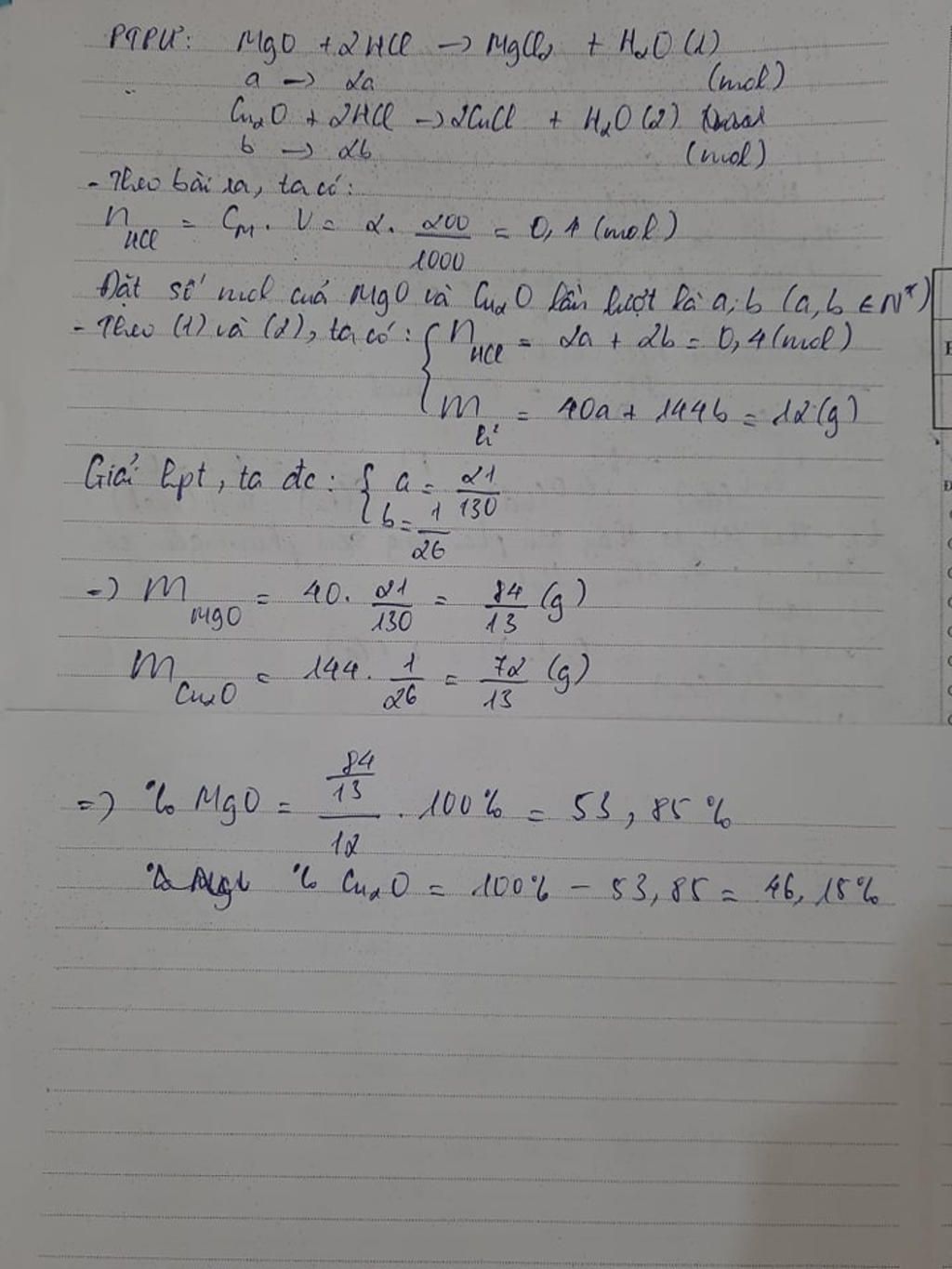 `=>%_(MgO)=\frac{6,46}{12}.100=53,83%`