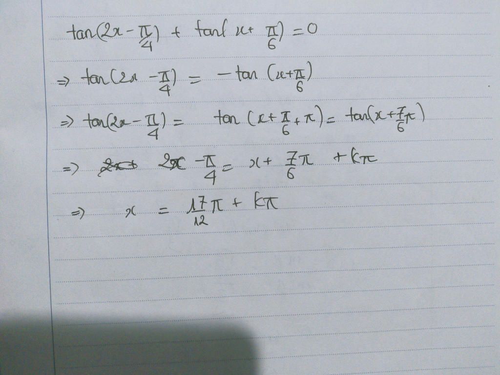 `<=> tan (2x - π/4) = -tan (x + π/6)`