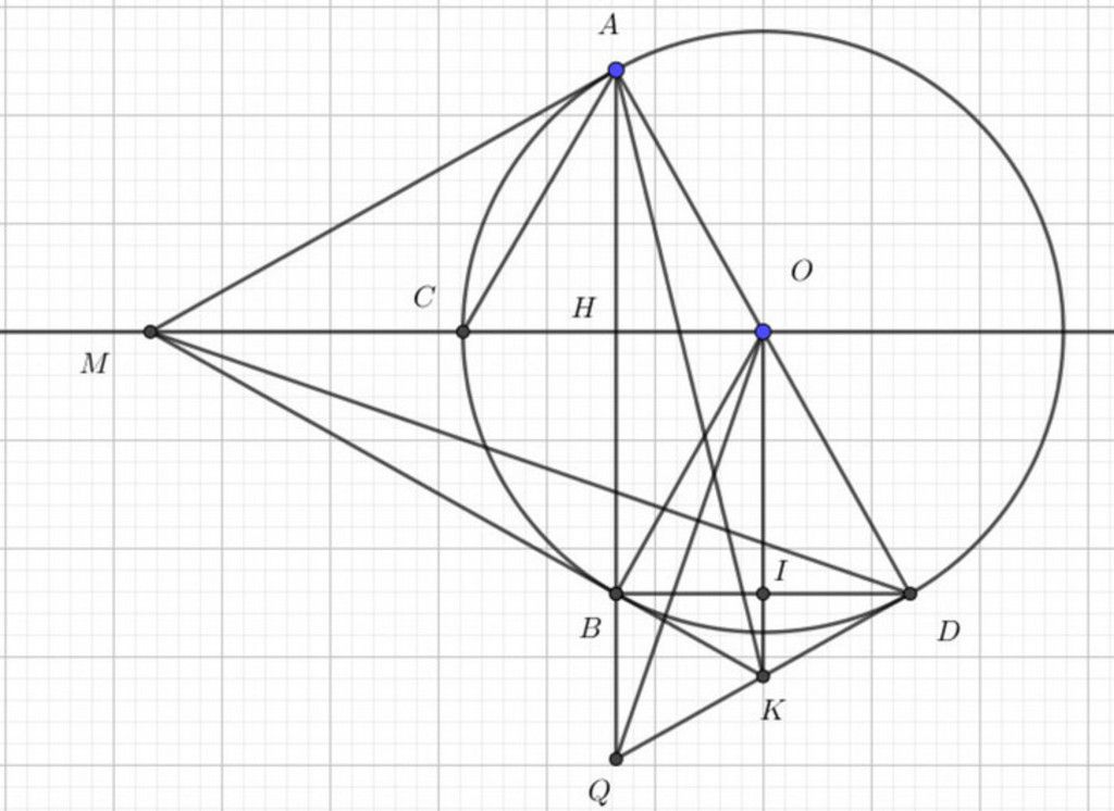 ⇒ ΔMAB cân M ⇒ MO đồng thời là đg cao
