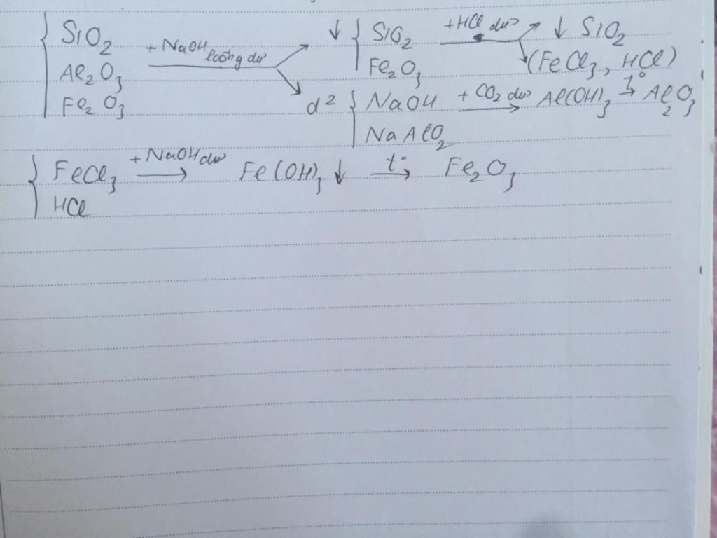 Cho NaOH vào các chất rắn trên thì có Fe2O3 không tan