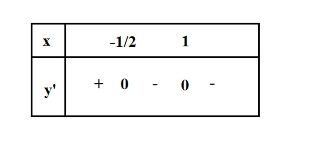 $y'=0 ↔ \left[ \begin{array}{l}x=-\dfrac{1}{2}\\x=1\end{array} \right.$