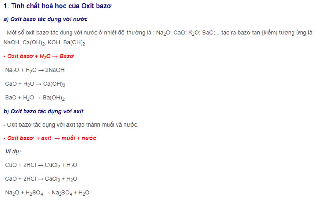 - Oxit bazơ tác dụng với axit tạo thành muối và nước.