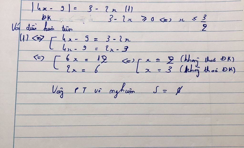 \left| {4x - 9} \right| = 3 - 2x\\