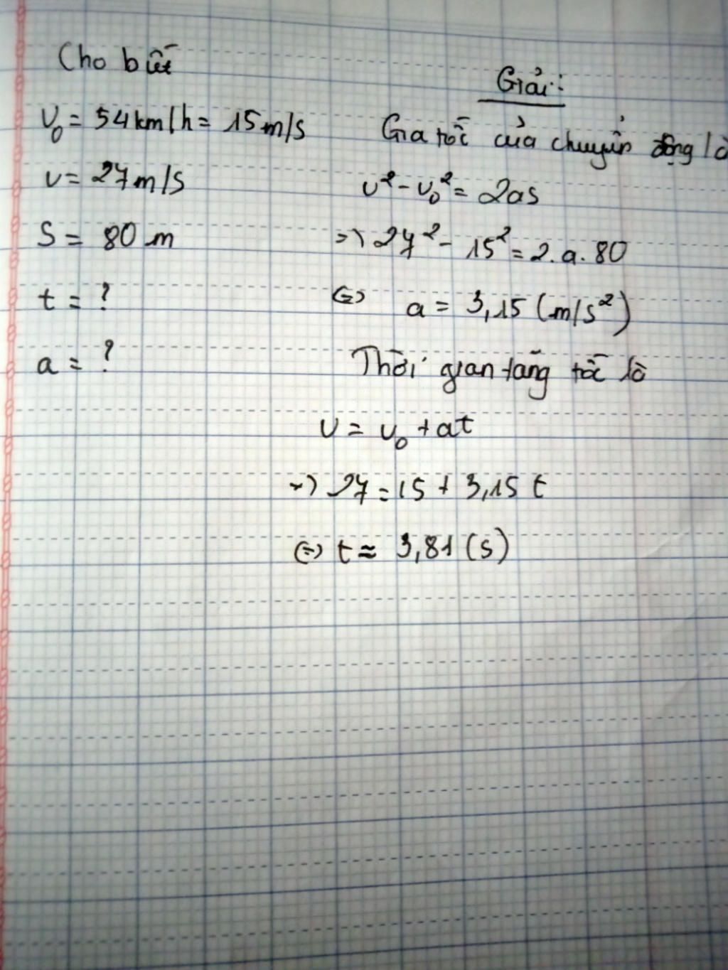 => a = $\frac{504}{160}$ = 3,15 (m/s²)