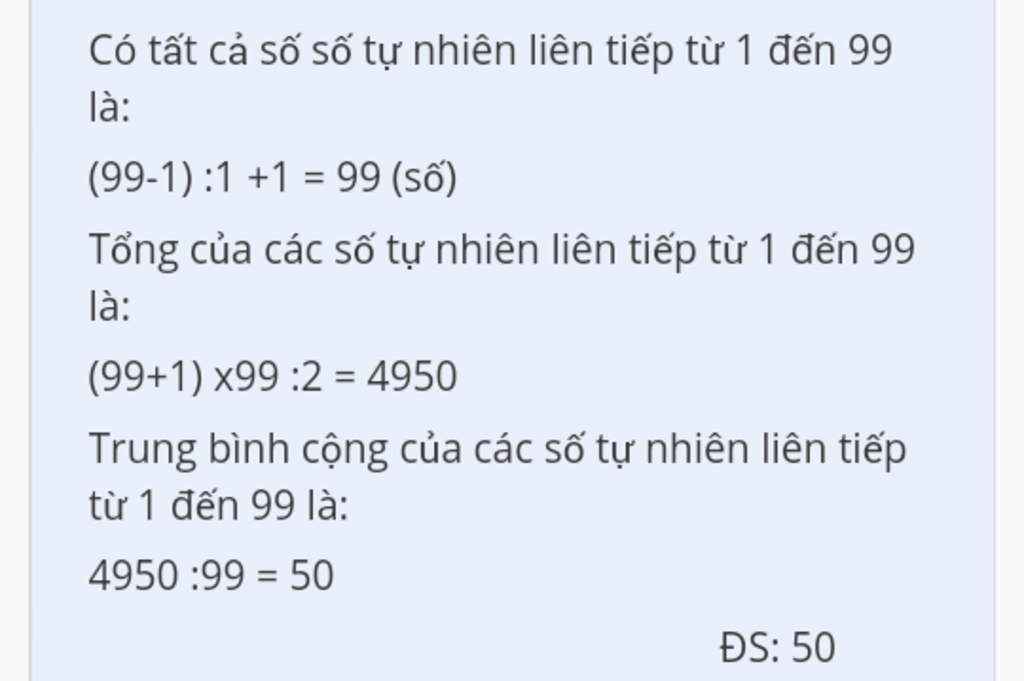tổng của các số hạng liên tiếp từ 1 đến 99 là: