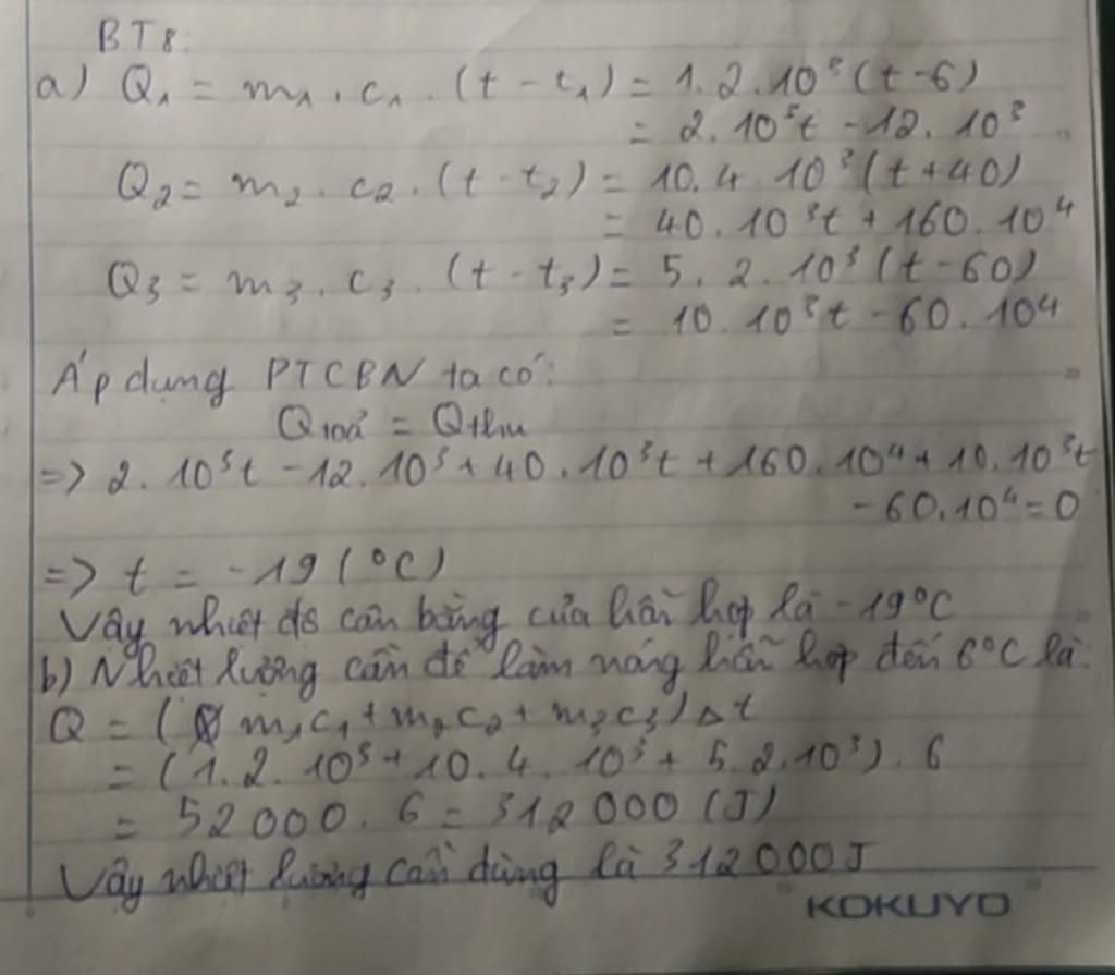 a. Nhiệt độ cân bằng của hỗn hợp là: