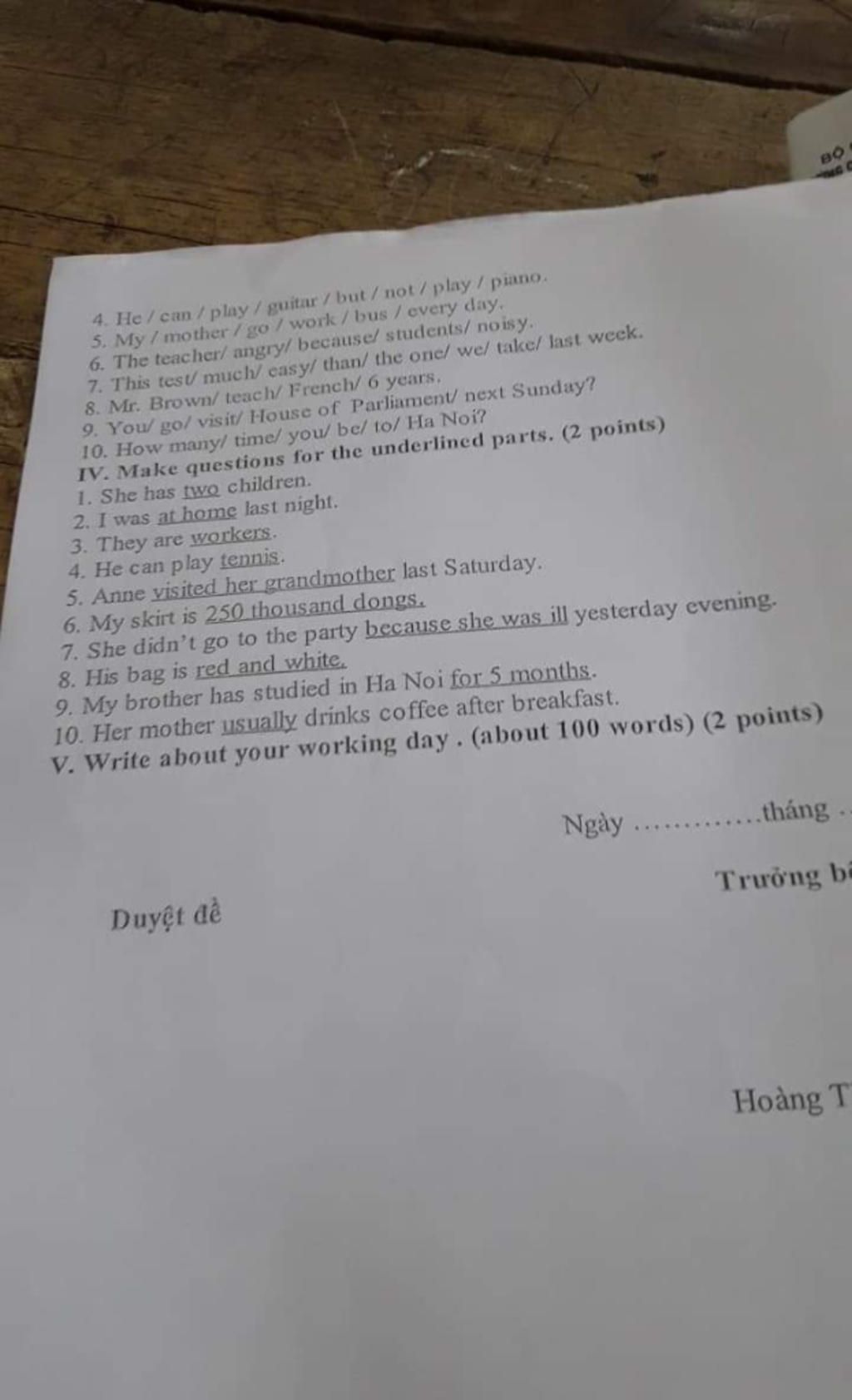 7. Why didn't she go to the party yesterday evening? (vì sao→ why)