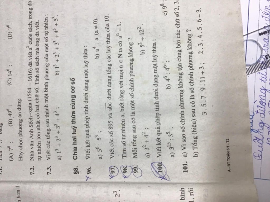 +) Nếu \(n = 0\) ta có: \({a^n} = {a^0}=1\) với mọi số tự nhiên \(a \ne 0.\) Do đó \(a \in \mathbb{N^*}\)