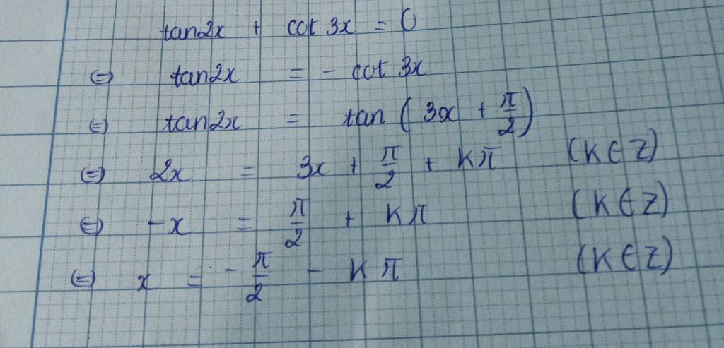 `<=> tan 2x = -tan (π/2 - 3x)`