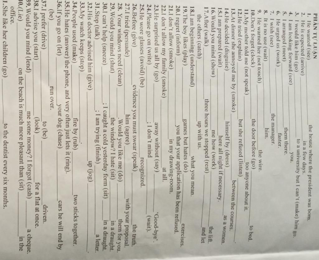 35.He hates (answer) the phone, and very often just lets it (ring).
